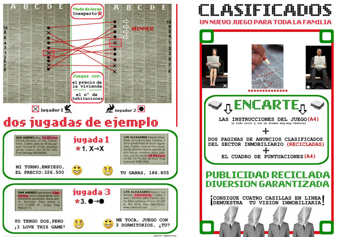 El proyecto CLASIFICADOS plantea que el soporte publicitario de los “Anuncios Clasificados” se convierta en un tablero de juego. Hagan juego señores: