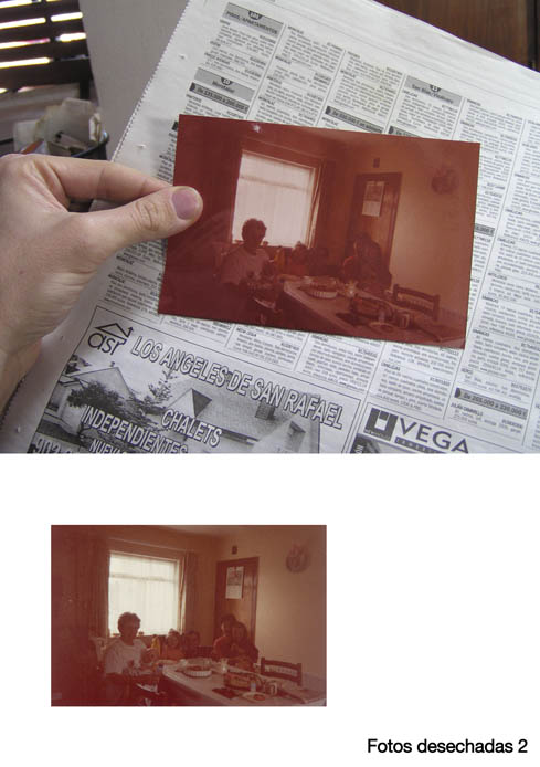 | 18 | Fotos de desecho por Pablo Rey Mazón Memoria explicativa Concepto: La industria de la fotografía, mediante los procesos industriales automáticos, produce una gran cantidad de fotos. Muchas de ellas no pasan el filtro comercial y son desechadas por los propios laboratorios, o, en segunda estancia, por los clientes. No cumplen con los requisitos de estar enfocadas, uniformemente iluminadas, tener un encuadre correcto, etc. Se conforma así una masa crítica de fotos sin seleccionar: desde la fotografía totalmente blanca hasta las fotos nocturnas en las que sólo vemos puntos de luz de un lugar desconocido. Estas fotos, al ser descontextualizadas, adquieren un significado nuevo a modo de Object Trouvé. Memória técnica |