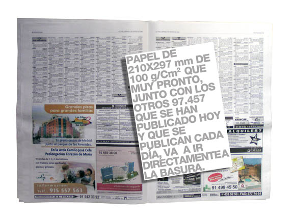 Memoria explicativa Anuncio que habla exclusivamente de sí mismo para enseñar lo absurdo de la enorme cantidad de papel que la publicidad consume cada día.