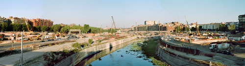 La M-30 no tuvo inicialmente la intención de ser una ‘autovía de circunvalación’. Surgió en los años 60 como conexión norte-sur paralela al eje de la Castellana y poco a poco se fue prolongando hasta cerrarse en los años 90. Este anillo de 32,5 km y un radio medio de 5,17 km respecto a la Puerta del Sol supuso la aparición de una barrera que fragmentó la trama urbana y la pérdida para la ciudad de un espacio tan característico como el río Manzanares. Con el inicio del mandato de Alberto Ruiz Gallardón en el 2004 la competencia de la M-30 pasó a pertenecer al Ayuntamiento de Madrid, siendo así la única autovía española cuyo titular es un ayuntamiento. En ese mismo año comenzó el proyecto Madrid Calle 30, nombre con el que desde entonces se denomina la vía y también la empresa municipal que la gestiona. Su objetivo es soterrar 4,2 km, entre otras actuaciones, de esta autovía de circunvalación a su paso junto al río Manzanares y solucionar los problemas de congestión y contaminación escondiendo los coches bajo tierra. Esta vía, lejos de ser una calle, es una autopista con más de 6 carriles por sentido en algunas zonas. Gracias al cambio de denominación el Ayuntamiento pudo acometer y gestionar unas obras que han durado en su fase de soterramiento y ampliación 4 años en turnos de día y noche, para poder estar acabadas en las siguientes elecciones municipales. Al margen de las dudas que suscita solucionar el problema del tráfico de Madrid ampliando aún más la capacidad de circulación de vehículos, las prisas por acabar la obra han venido acompañadas de algunas irregularidades que deberían hacer reflexionar tanto a los ciudadanos como a la Administración. Por ejemplo la división de la obra en 15 tramos para evitar tener que hacer el estudio de impacto medioambiental; o que el concurso internacional para el parque sobre los túneles se fallara una vez comenzadas las obras. Todo ello indica una falta de previsión y de consulta al ciudadano preocupantes, en un proceso que va a suponer un cambio en los presupuestos y funcionamiento de una metrópoli como Madrid. El proyecto, que maneja un presupuesto inicial de 4.250 millones de euros, endeudará a los madrileños 35 años como mínimo: una hipoteca pública incluso para todos aquellos que aún no puedan ‘disfrutar’ de la suya propia. Un negocio para las grandes compañías constructoras. Para más información: