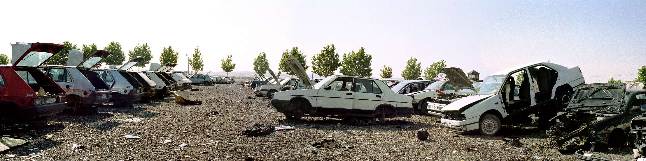 Los cementerios de coches son ya algo del pasado. Ahora se llaman Centros Autorizados de Tratamiento (CAT), aseguran una gestión ecológica del coche al final de su vida y facilitan el proceso de baja del vehículo. Esa es la presentación que hacen de sí mismos los Desguaces La Torre, uno de los mayores CATs de la Comunidad de Madrid: que organiza desde la recogida a domicilio hasta la separación de todas sus piezas para ser vendidas en sus enormes naves. En definitiva, facilitar el proceso de desecho y reutilización inteligente de los coches. Hoy en día los coches tienen que ser, según la normativa, convertidos en residuos inertes; esto es, limpios de todo tipo de material tóxico, desde el aceite hasta el líquido de frenos, que deben ser convenientemente reciclados o almacenados en lugares seguros. Una vez están limpios, siguen suponiendo una gran cantidad de acero y otros metales, vidrio y todos los plásticos imaginables. Por ello son uno de los residuos más rentables, lo que hace que se fomente no sólo su desecho sino también su reciclaje, convertido en chatarra.