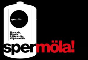 ¿Son los contenedores de obra los únicos lugares de la ciudad en los que los ciudadanos pueden intercambiar objetos?¿Son los periódicos de segunda mano? ¿Son los puntos limpios? Spermöla! es un intercambio libre de objetos útiles entre vecinos. Si tienes algún objeto reutilizable del que quieras desprenderte o necesitas cualquier cosa, pásate por la Plaza de la Piña y llévate lo que otros han dejado. Todo vale: juguetes, muebles, libros, ropa... todo aquello que ya no te sirve le puede servir a otros, porque TU BASURA NO ES BASURA. El objetivo es alargar la vida de todo aquello que todavía puede ser útil: ¡del vertedero ya no es posible rescatar nada! Desde el Jueves 18 se colocará en el espacio principal de basurama en la Plaza de la Piña de Valdemoro todo lo que traigan los vecinos y el servicio de limpieza del Ayuntamiento, y el Domingo 21 terminará el intercambio. No tienes que aportar nada para llevarte lo que quieras!
