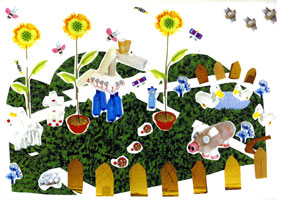 Drapart presenta... | Basuramita Del viernes 18 al domingo 20 de mayo de 2007 en el Parque del Cristo de la Salud. Valdemoro. Madrid Vestido burocrático por Nevena En el festival Basuramita llevaré a cabo un proyecto que crearé junto con el público. Mi idea es continuar con la idea de "Dress for sucess" - exponer el vestido realizado a partir de los papeles burocráticos que tuve que conseguir para salir de mi país y quedarme a vivir y estudiar en la Unión Europea estos últimos 6 años. Usando este vestido, hasta ahora, he realizado dos performances en la calle - enfrente de las comisarías que tratan "asuntos de extranjeros" en Granada y Barcelona. Invito a todos los visitantes que aporten fotocopias de sus documentos - sus propias pesadillas burocráticas. Estos nuevos papeles los pegaremos a mi vestido, para hacerlo así mucho mas grande. De esta manera, además de reflejar mi historia personal, el vestido ganará un contexto más global. Además del "Vestido burocrático" en Basurama crearé un vestido más. Organizaré un pequeño concurso/experimento llamado "Tu producto favorito" e invitaré a todos los niños y niñas presentes a que aporten embalajes vacíos de sus productos favoritos (yogures de distintos sabores, etc.) para crear juntos un nuevo vestido - ¡de basura en color! BASUGranja por Silvia Ferrari Crearé en directo una pequeña granja reciclada con sus animales, plantas y flores - todo realizado con envases de plástico y otros materiales de recuperación. Habrá animales fantásticos y flores realizadas a partir de botellas, formando un césped artificial, igual una pequeña valla de madera, un árbol, un charco y poco a poco ir poblándolo con las cosas que se crearán allí mismo. Parte de la instalación la trabajaré yo sola y otra parte la realizaremos trabajando con los niños y las niñas que quieran dejar ahí sus piezas. También se podrá crear un pequeño jardín de flores de plástico, en el que puede participar todo el que quiera, de modo que vaya creciendo en los tres días. |