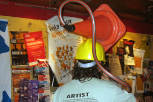 Jose Manuel Pizarro es un auténtico artesano de los sonidos y los instrumentos echos con basura. Músico de profesión y de formación es un coleccionista irredento de todo aquello que suene soplando, venido de cualquier parte del mundo, y eso le permite encontrarse una flauta tradicional china en una tubería, un saxofón en una regadera o una flauta dulce en una muleta de ortopedia. Además, no deja de investigar en todo tipo de sonoridades y artefactos sonoros de su propia invención, intercambiándose trucos con otro maestro, el gran Xavi Lozano.