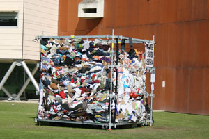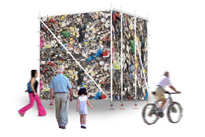 La instalación Basura³ (Basura al cubo) es un retrato público y colectivo de nuestra cara B, de todo lo que tiramos y desechamos. Cualquier persona puede participar en esta obra colectiva, simplemente subiéndose al cubo y dejando su "aportación". Y de paso puede aprovechar para ver su entorno urbano desde lo alto. Al final del proceso esta basura irá al mismo sitio que el resto de la basura de los contenedores normales. En ese sentido no va a cambiar nada. Será reciclado, o no.