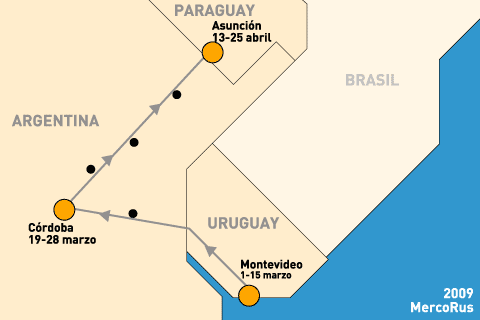 RUS. Gira Mercorus: ronda basuramericana. Residuos Urbanos Sólidos. Montevideo, Córdoba y Asunción. Marzo - abril 2009. Exposición de RUS y Gira Mercorus en el CCE Montevideo hasta el 8 de septiembre 2009.