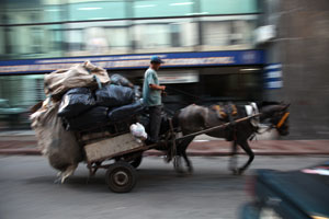 Unas 12.000 personas, según datos de la Unión de Cooperativas de Residuos Urbanos sólidos (UCRUS), recogen la basura que otros tiran en la capital del Uruguay. Recogen cada día 400 toneladas de basura (alrededor del 40% de toda la basura la ciudad), y venían ganando, los que más –los más organizados, los más industrializados-, hasta antes de la crisis, entre 2.600 y 4.300 pesos uruguayos mensuales por trabajador. Aun así, y pese a su muy reconocible y abundante presencia en la ciudad -sus carros tirados por caballos, sus camiones y bicicletas o su carro de mano-, su labor resulta invisible para la mayoría. Por otro lado, y desde el impacto de la crisis económica global, además, el sueldo de los recicladores se ha reducido hasta los 700 pesos uruguayos por trabajador al mes. Los precios de los materiales han bajado en tal porcentaje, dependen completamente del mercado global de materias primas, que muchos recolectores informales no pueden salir a trabajar, dado que no les sale la cuenta con la energía y/o el gasoil que consume para el poco dinero que sacan. Por otro lado, la ciudad de Montevideo, implantó hace como una década un sistema de recogida basado en unos contenedores italianos (que vienen acompañados por sus correspondientes camiones) con los que es muy complicado trabajar para los recolectores. Son demasiado altos y están presentes durante todo el día en la calle, lo que hace que haya que meterse en ellos para encontrar los sepultados materiales aprovechables. Por último, el ritmo de producción de basura de los uruguayos, aunque creciente, se sigue manteniendo en unos niveles bajos incluso para un país del sur (entre 0,8 y 1 kilogramo por persona y día), con lo que tenemos un panorama muy particular. Bibliografía Tirando del carro [pdf]. Programa Uruguay Clasifica. 2006 Plan Director de Residuos Sólidos de Montevideo y Area Metropolitana CEMPRE (Compromiso EMpresarial Para el REciclaje) Precios