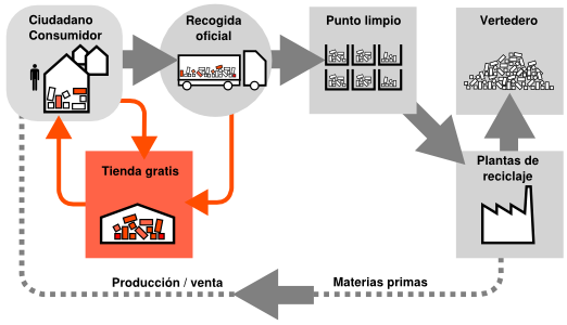 El projecte proposa una actuació davant aquest procés de consum. L'esmentada actuació es constitueix en la inserció d'aquests objectes en un cicle d'ús diferent a l'impost per dotar-los de segones i terceres oportunitats, obviant l'ultimàtum imperiós del consum obligatori. A la botiga de productes gratis es regalen objectes útils recuperats de les escombraries. Allò que tu no vols, un altre ho pot necessitar, perquè les teves deixalles no són escombraries. La botiga gratis és també un espai de debat de polítiques mediambientals, un lloc on pensar junts què podem fer per desenvolupar polítiques efectives anticonsumistes.